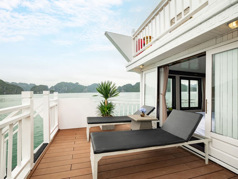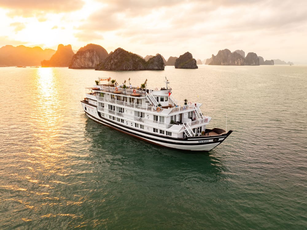 17:30 – Quý khách trở lại du thuyền, nghỉ ngơi trên boong tắm nắng, ngắm hoàng hôn và lưu lại những khoảnh khắc tuyệt vời.