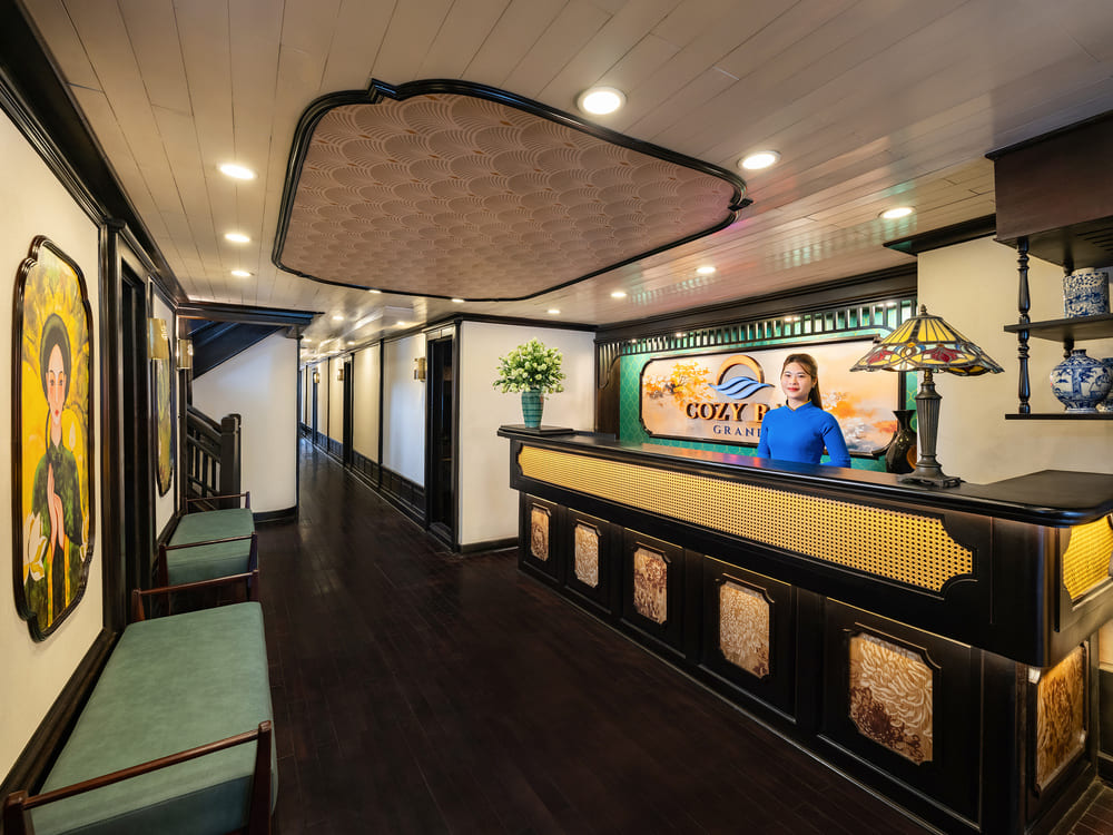 11:45 – 12:00 – Đến cảng Tuần Châu, Quý khách làm thủ tục check-in tại sảnh chờ du thuyền Cozy Bay Grand